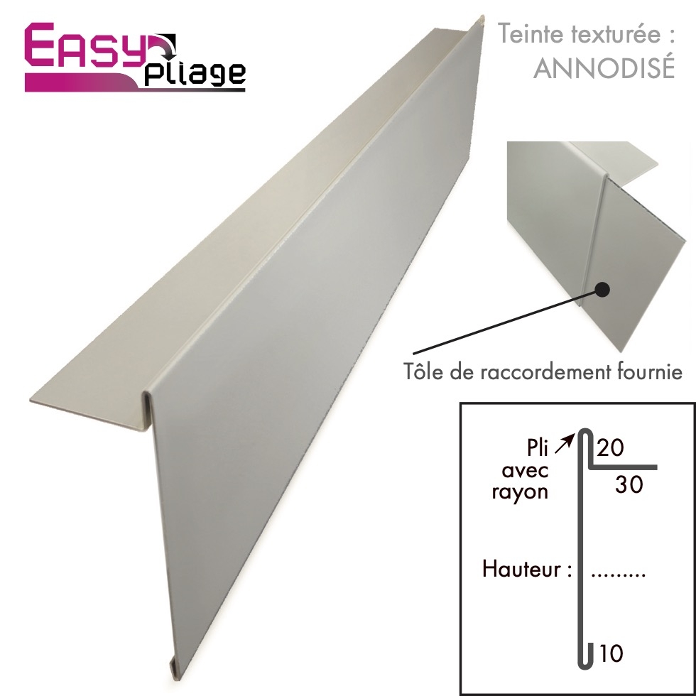 Finition aluminium Easy Pliage pour terrasses sur plots. Cache la tranche des dalles (20 mm) et plots visibles. Disponible en plusieurs hauteurs et coloris, longueur 3M, avec jonctions fournies.